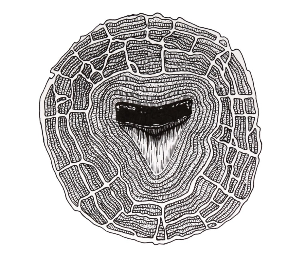 Drawing of a cross section of a polymetallic nodule by Julia Barnes